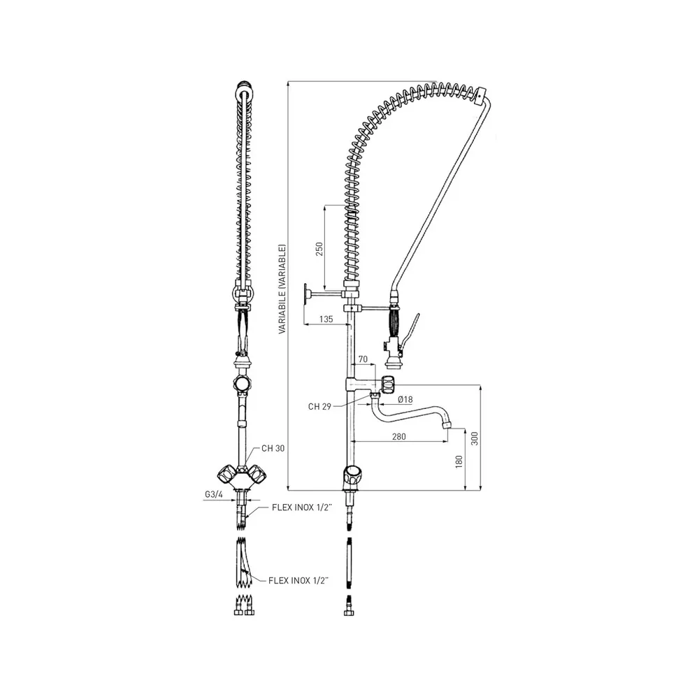 Bateria se remarca prin dusul rezistent la presiune ridicata, care asigura o clatire eficienta si constanta chiar si in perioadele de utilizare intensa. Robinetul cu un singur orificiu si coloana ajustabila ofera confort si ergonomie, permitand personalului sa lucreze mai rapid si mai eficient, fara efort suplimentar.