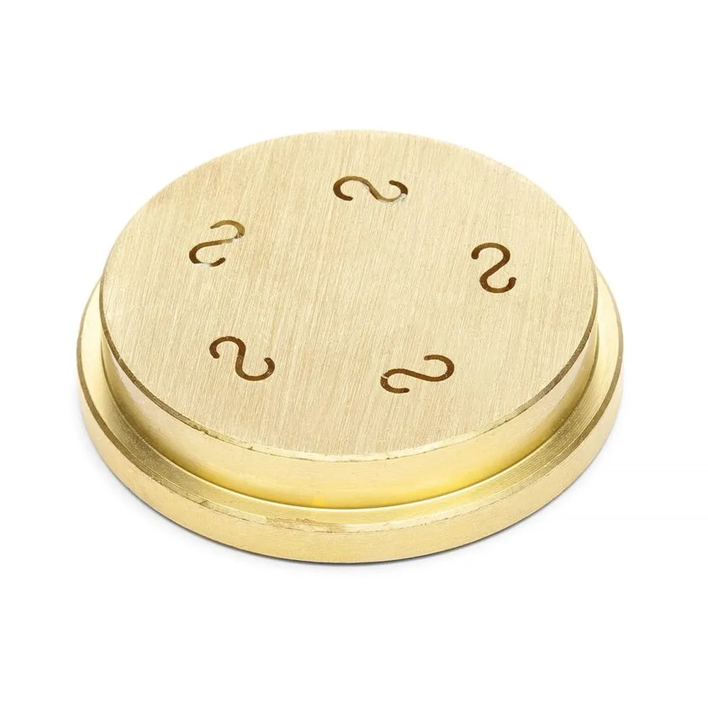 Fabricată din alama de calitate, matrita garantează durabilitate și performanță de lungă durată. Cele 5 gauri în formă de S, fiecare cu dimensiunea de 9x5 mm, permit obținerea pastelor cu consistență uniformă și formă perfectă, ideală pentru preparate gourmet. Este soluția optimă pentru unitățile de alimentație publică care doresc să ofere clienților paste deosebite, cu aspect profesional și textură fină.