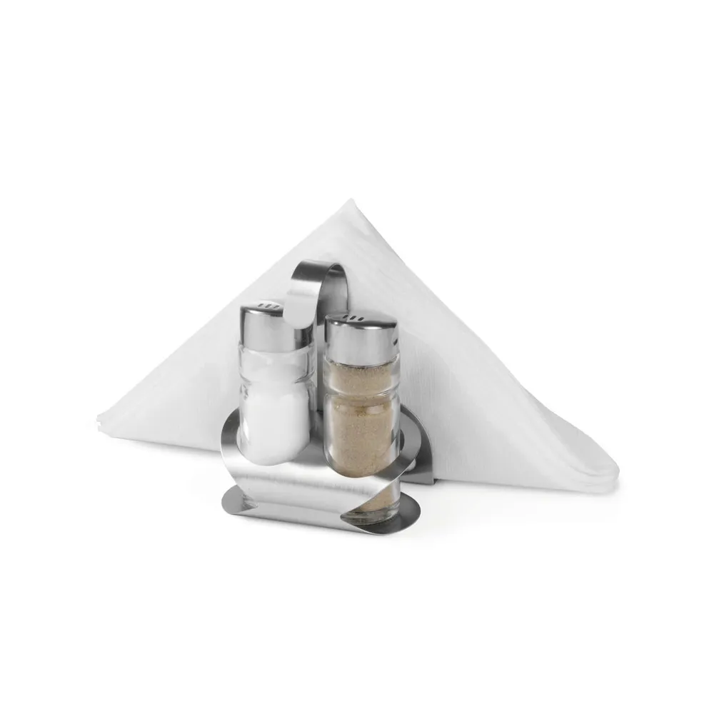 Acest set condimente 3 piese combina functionalitatea cu estetica, fiind ideal pentru unitatile de alimentatie publica care doresc sa ofere clientilor o experienta completa la masa. Include recipiente pentru sare si piper, precum si un suport practic pentru servetele, oferind un plus de confort si organizare pe mesele din restaurante, cafenele, bistrouri sau cantine.