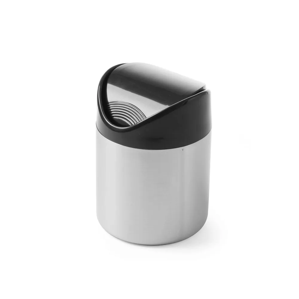 Fabricat din otel inoxidabil de inalta calitate si prevazut cu capac rabatabil din plastic, acest cos de gunoi este robust, rezistent la uzura si usor de curatat. Dimensiunile compacte (Ø120x165 mm) il fac ideal pentru mesele restaurantelor, cafenelelor, bistrourilor sau pentru bufeturile de evenimente.