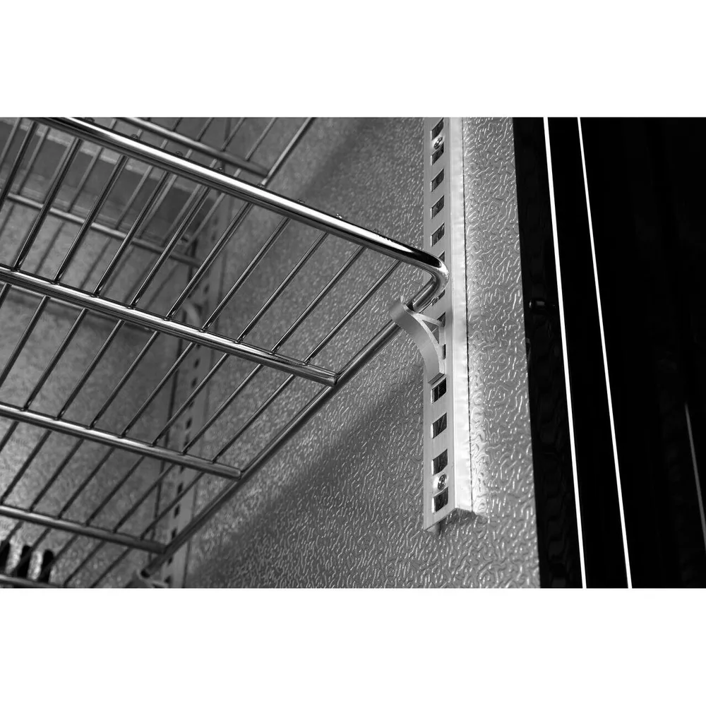 Acest **frigider pentru bauturi** este prevazut cu carcasa din inox si usa cu geam securizat, oferind durabilitate si vizibilitate perfecta a continutului. Camera din aluminiu reliefata asigura o distributie uniforma a temperaturii, in timp ce ventilatorul interior sustine racirea constanta si mentinerea umiditatii optime.