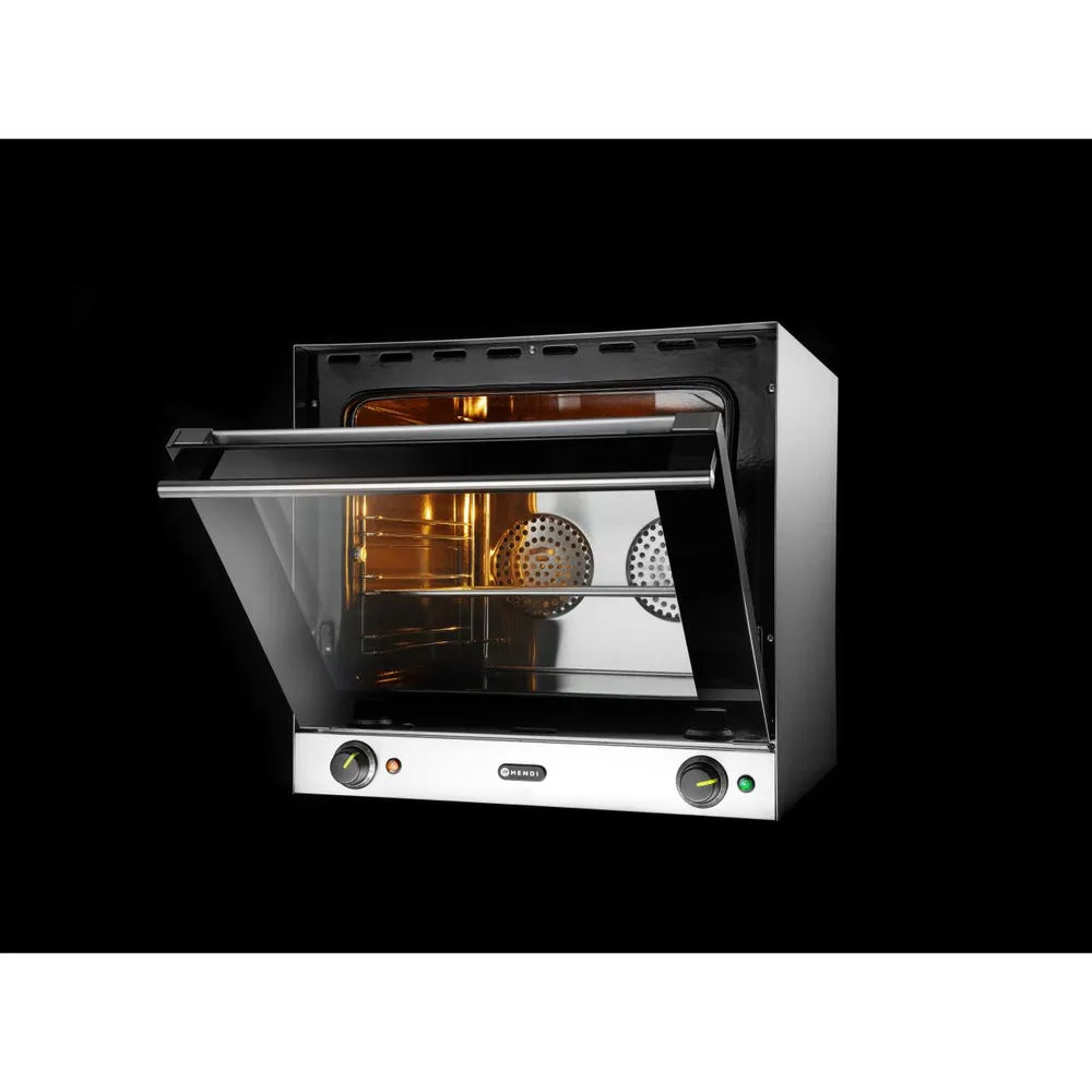 Cuptorul cu convectie H90 este un cuptor electric profesional compact si performant, conceput pentru unitati de alimentatie publica precum restaurante, fast-food-uri, bistrouri, cafenele, baruri sau mici brutarii. Datorita dimensiunii reduse si alimentarii la 230V, acesta poate fi instalat cu usurinta in spatii limitate, oferind performante excelente pentru coacerea uniforma a preparatelor.