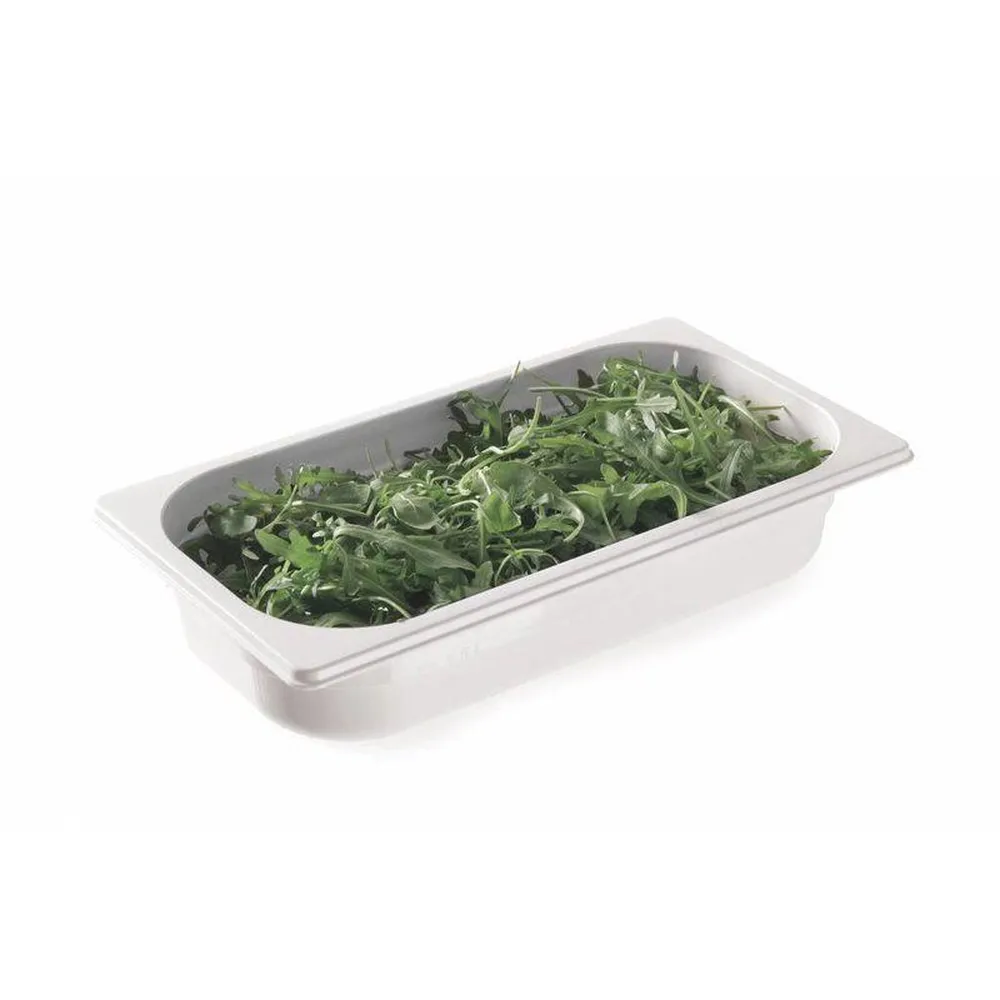 Cu o capacitate de 6.5 litri si o adancime de 100 mm, vascheta GN 1/2 din policarbonat alb este potrivita atat pentru depozitarea alimentelor in refrigeratoare, cat si pentru prezentarea acestora intr-un mod practic si igienic. Designul sau permite stivuirea usoara, economisind spatiu in zonele de lucru. In plus, scala gradata de pe peretii interiori faciliteaza masurarea rapida a volumului de ingrediente.