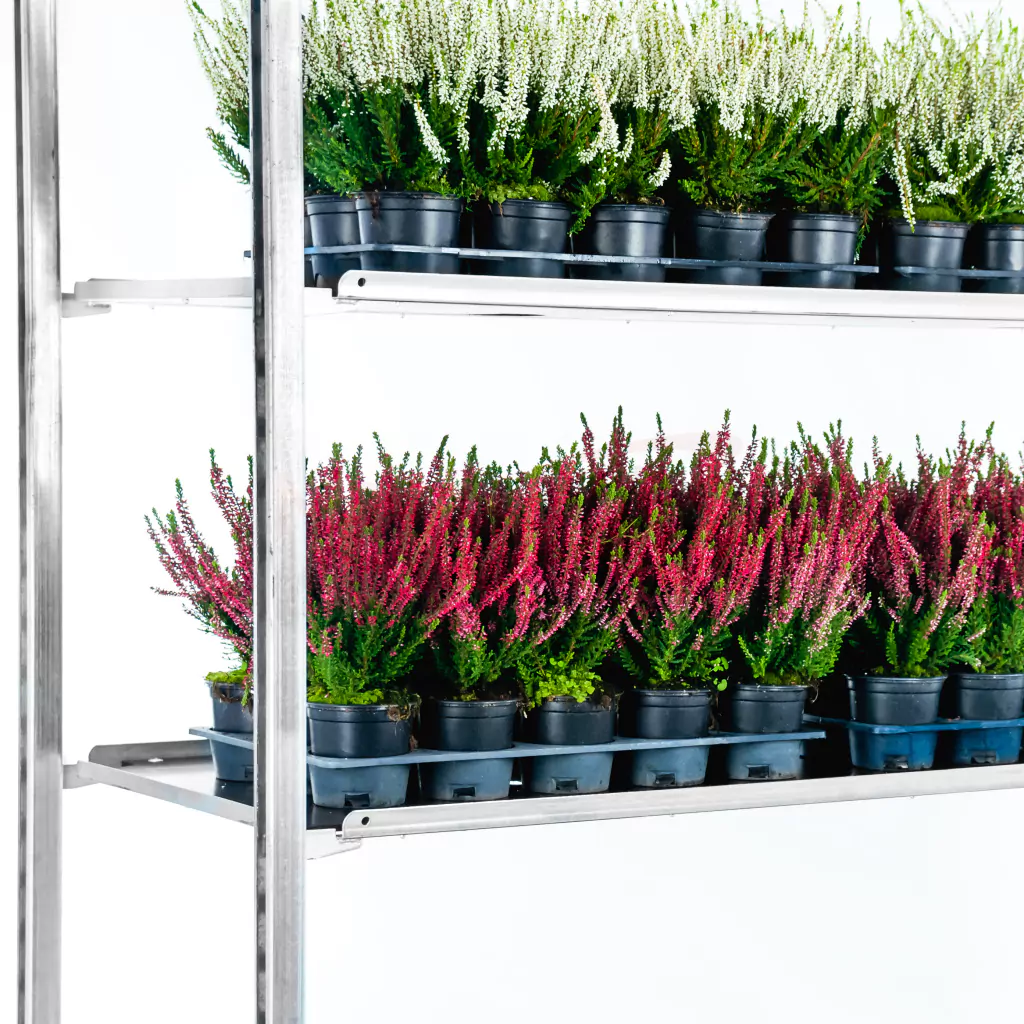 Unul dintre principalele beneficii ale acestui Carucior pentru flori este capacitatea sa de a susține o greutate considerabilă. Fiecare raft poate susține până la 100 kg de plante, ceea ce îl face perfect pentru expunerea florilor, atât la interior cât și în exterior. Realizat dintr-un material robust și durabil, precum oțelul zincat, caruciorul rezistă cu ușurință la uzura cotidiană, protejându-se eficient împotriva coroziunii, iar designul său simplu dar elegant îl face potrivit pentru orice mediu de lucru.