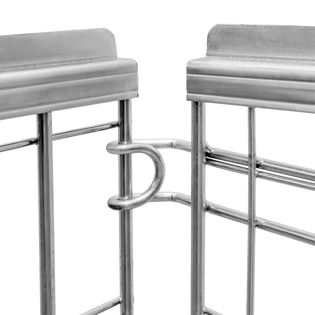 Cosul metalic pentru paleti cu deschidere pe ambele părți se pretează atât pentru utilizare interioară, în magazine sau depozite, cât și pentru utilizare exterioară, în spații de depozitare exterioare sau zone de manipulare a produselor. Posibilitatea de stivuire îl face extrem de flexibil, iar deschiderea pe ambele părți permite accesul rapid din orice direcție, îmbunătățind astfel eficiența operațiunilor de depozitare și manipulare a produselor.