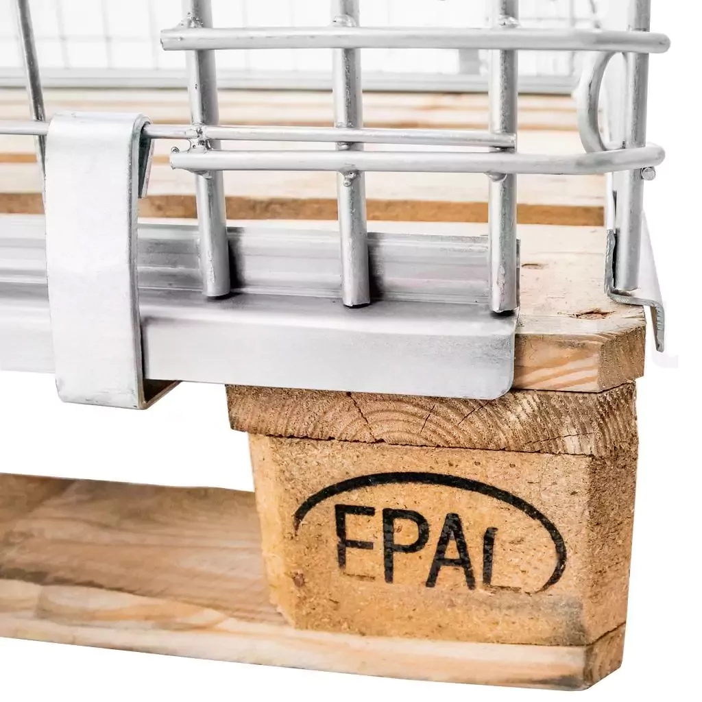 Cosul metalic este compatibil cu paletele EPAL standard, iar acest aspect permite manipularea ușoară a acestuia cu ajutorul vagoanelor cu paleti sau paleti. Acest aspect crește eficiența logistică, reducând timpul de manipulare a produselor și îmbunătățind fluxul de lucru din depozite, magazine sau unități industriale.