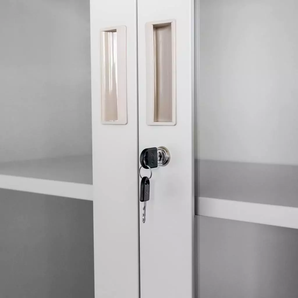 ✔ Uși parțial vitrate pentru acces vizual rapid – Permite identificarea rapidă a documentelor sau obiectelor depozitate fără a fi nevoie să deschizi ușile.