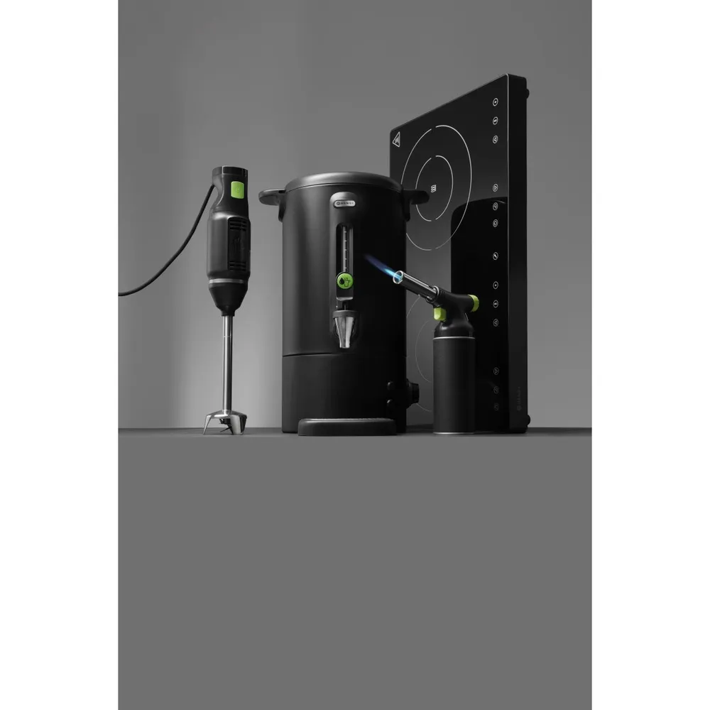 Proiectat de designerul olandez Robert Bronwasser, acest fierbator vin impresioneaza prin corpul din otel inoxidabil negru mat cu un singur perete si manere elegante din polipropilena. Capacul ergonomic si robinetul fara picurare contribuie la un aspect profesional si confort in operare, fiind potrivit pentru bufete, cafenele, baruri, restaurante si servicii de catering care pun accent pe detalii si calitate.