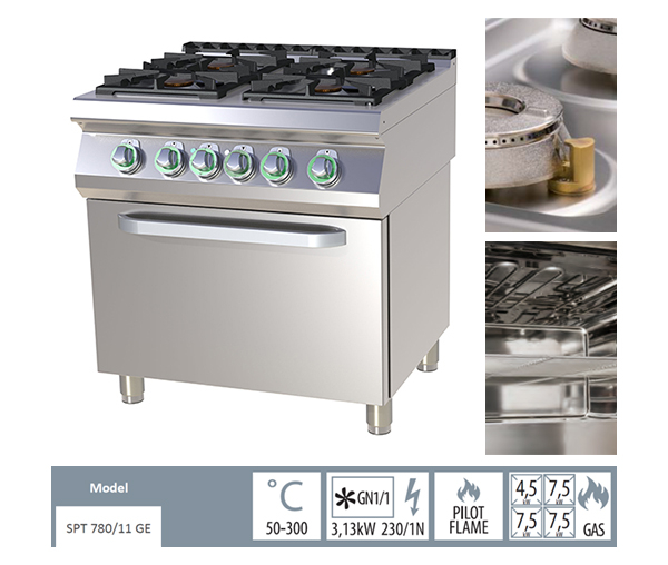 Cu un cuptor cu o putere de 6,3 kW, echipamentul permite prepararea simultana a mai multor feluri de mancare, sporind astfel productivitatea in bucatarie. Cuptorul alimentat cu gaz asigura o distributie uniforma a caldurii, esentiala pentru obtinerea unor rezultate de calitate. Acest aspect este deosebit de important in unitatile HoReCa, unde timpul de livrare si calitatea mancarurilor sunt prioritati.