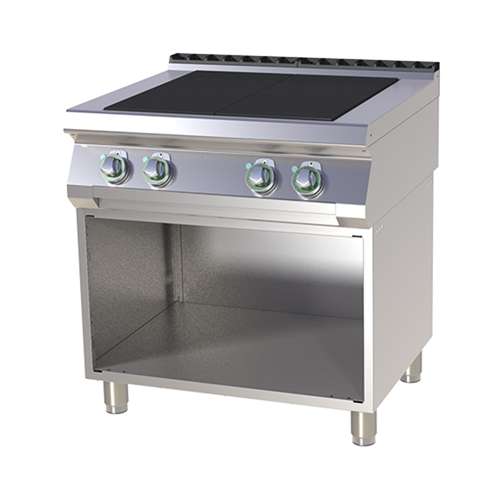 Cu cele 4 plite profesionale de 3 kW fiecare, acest echipament ofera o distributie uniforma a caldurii, permitand prepararea rapida si eficienta a unei varietati de feluri de mancare. Masina de gatit profesionala este perfecta pentru prajit, fierbere sau preparate la gratar, facand-o o alegere excelenta pentru orice tip de bucatarie, indiferent de dimensiunea acesteia.
