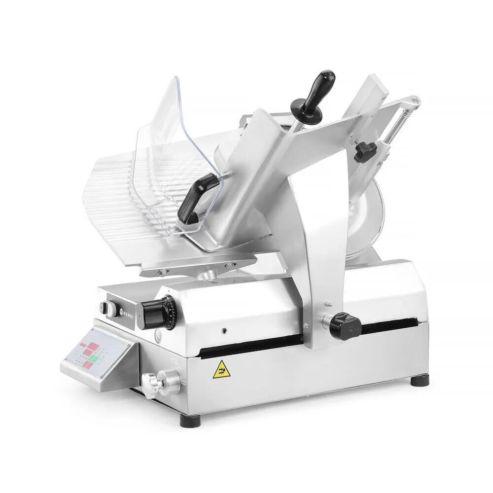 Acest feliator profesional permite reglarea grosimii feliei de la 0 la 16 mm, asigurând rezultate uniforme pentru fiecare tip de produs. Motorul puternic, racit cu aer și protejat la supraîncălzire, împreună cu lama din oțel inoxidabil și discul universal, garantează o feliere rapidă și eficientă, indiferent dacă este vorba de carne fără os, pește, brânzeturi sau mezeluri.