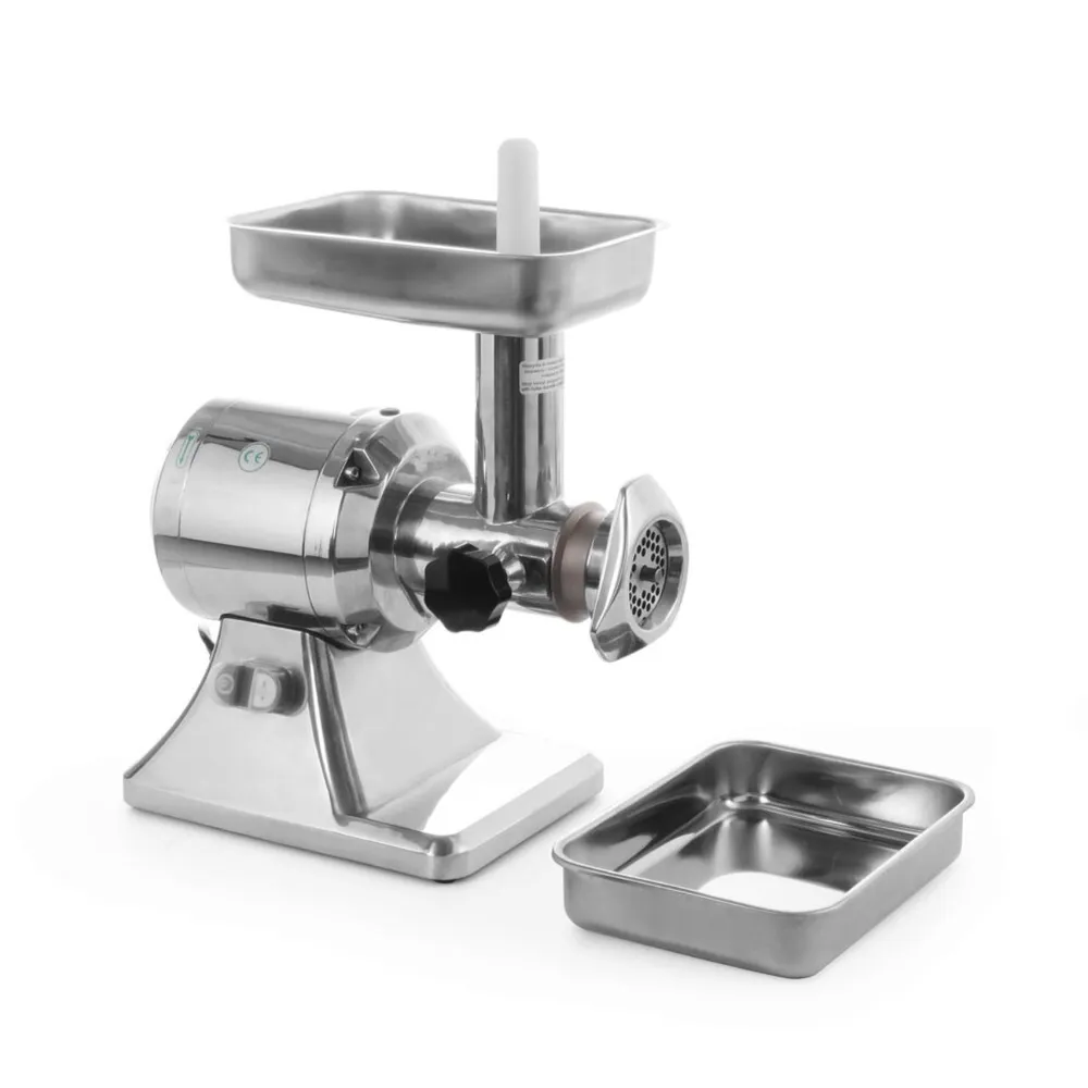 Masina de tocat carne Profi Line 12, 750W, este un echipament profesional esențial pentru măcelării, restaurante, catering și unități de alimentație publică care doresc să proceseze rapid și eficient carne proaspătă. Această masina de tocat profesionala garantează o tocătură uniformă și o operare silențioasă, fiind concepută pentru a răspunde nevoilor intensive de lucru ale bucătăriilor comerciale.
