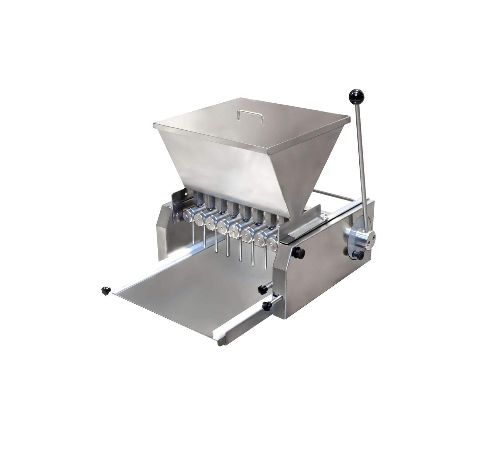 Utilizarea aparatului Pralinject aduce un avantaj competitiv major prin capacitatea sa de a efectua dozarea simultana prin 8 duze. Acest sistem permite umplerea rapida si precisa a formelor, fiind ideal pentru lucrul cu ganache (fara incluziuni), lichioruri si alte compozitii fluide. Beneficiul principal este uniformitatea: fiecare pralina primeste exact aceeasi cantitate de umplutura, eliminand pierderile de materie prima si garantand un produs finit standardizat, la cele mai inalte exigente de calitate.