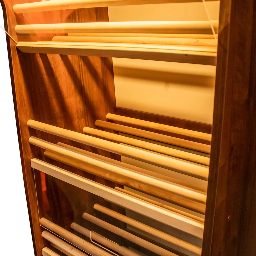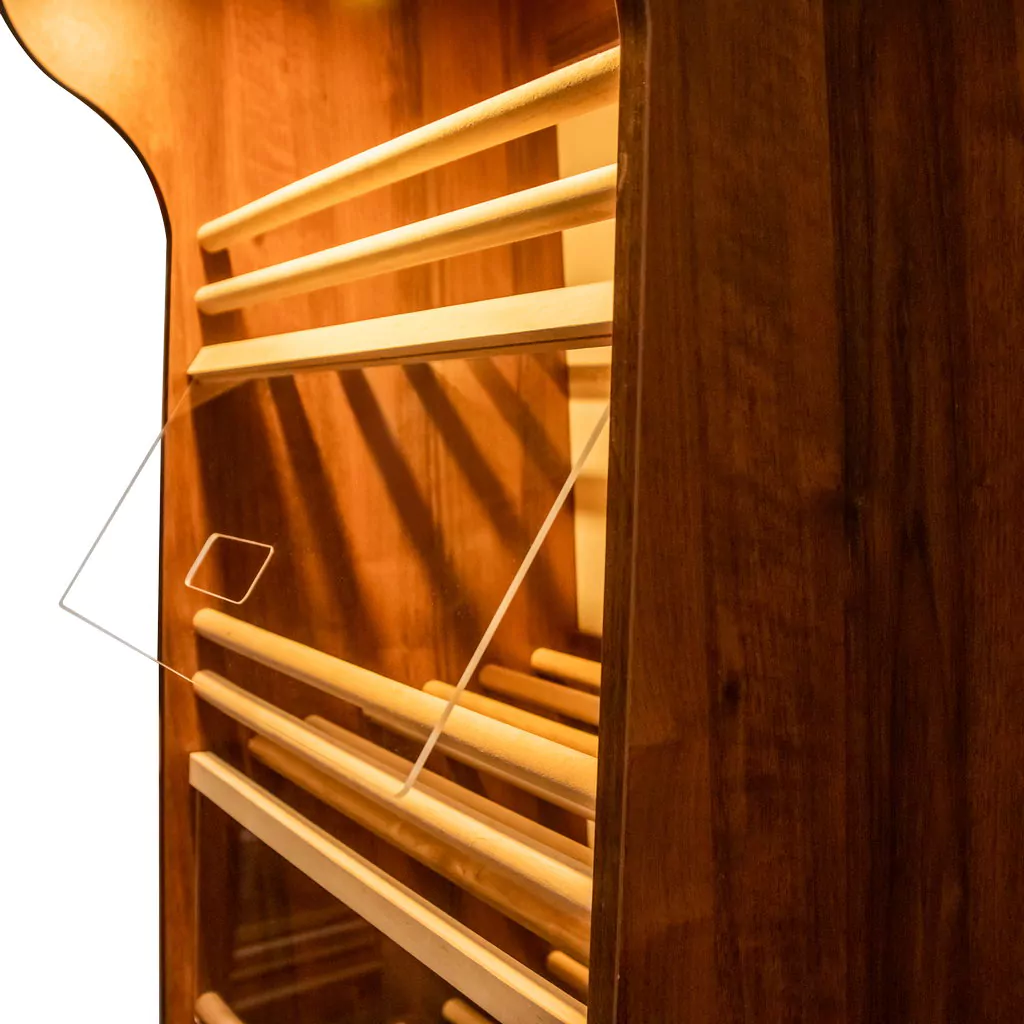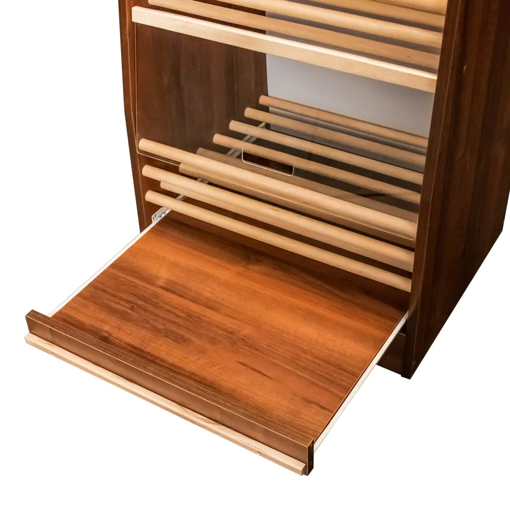 Un alt avantaj al acestui raft pentru pâine este blatul retractabil pentru cruste, care permite colectarea resturilor de pâine și ajută la menținerea unui mediu curat și igienic. Acesta este ușor de curățat, economisind timp și asigurându-se că zona de expunere rămâne mereu ordonată. De asemenea, materialul din care este fabricat raftul – lemn de calitate superioară și plexiglas – este rezistent și durabil, ușor de întreținut și de curățat, menținându-și aspectul impecabil pe termen lung.