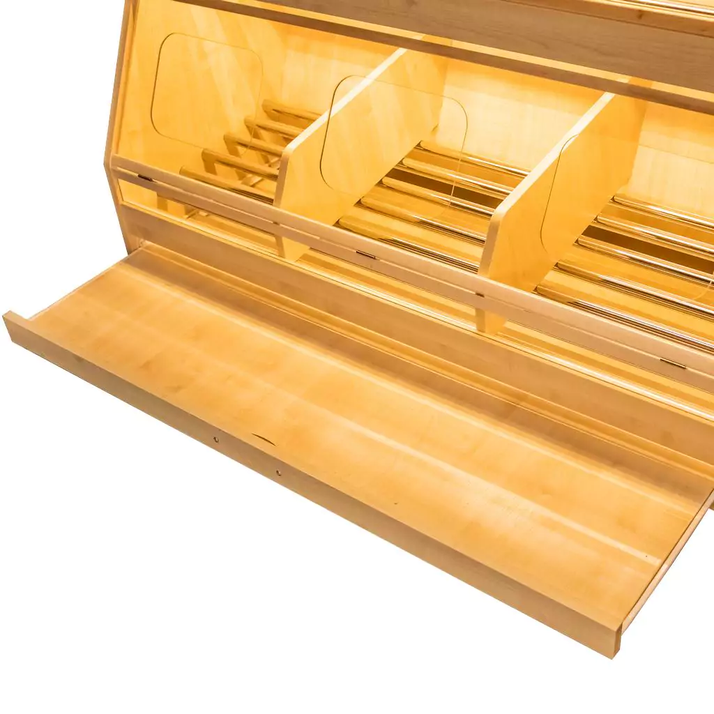 Raftul pentru pâine artar adaugă o notă de eleganță și rafinament oricărei unități comerciale. Cu o lățime de 125 cm și o adâncime de 60 cm, acest raft este perfect pentru a expune o varietate de produse de panificație, de la pâini și baghete, până la prăjituri și produse de patiserie. Finisajul din lemn de artar adaugă un aspect cald și natural, făcându-l potrivit pentru orice tip de decor comercial.