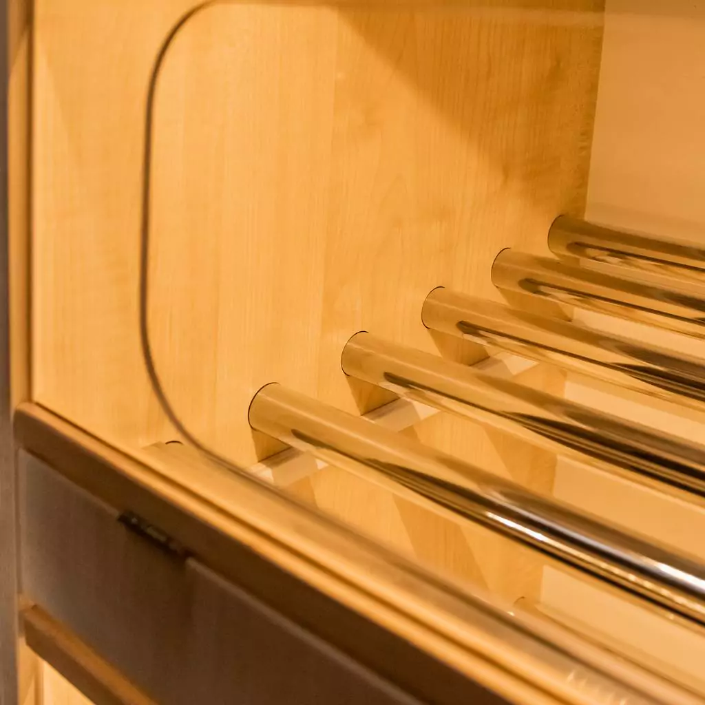 Cu 5 rafturi adânci, dintre care 4 sunt protejate de plexiglas, acest raft pentru pâine oferă suficient spațiu pentru expunerea unei cantități mari de produse. Raftul inferior este dotat cu 3 compartimente, perfecte pentru a organiza diferite tipuri de produse de panificație. În plus, blatul retractabil pentru cruste permite o curățare rapidă și ușoară, menținând mediul igienic și ordonat.