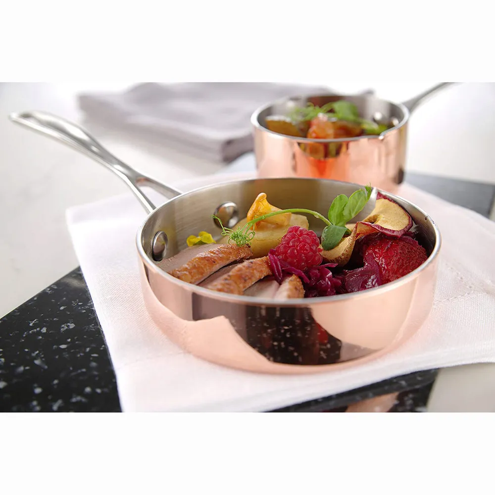 Tigaia profesionala clatite Marble este realizată dintr-un strat triplu de cupru, aluminiu și oțel inoxidabil, asigurând transfer eficient de căldură și durabilitate sporită. Niturile care fixează stratul de oțel inoxidabil sporesc rezistența produsului, iar compatibilitatea cu plitele pe inducție o face versatilă pentru orice tip de bucătărie profesională. Este recomandată spălarea manuală pentru menținerea proprietăților materialelor și prelungirea duratei de viață.