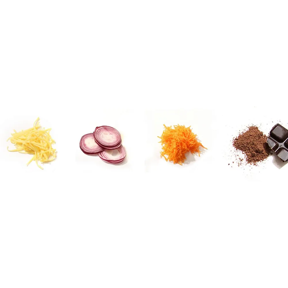 Conceputa pentru utilizare intensiva, aceasta razatoare profesionala din inox dispune de patru fete functionale, permitand raderea, felierea si maruntirea diverselor tipuri de alimente – de la branzeturi si legume pana la ciocolata sau citrice. Suprafata inoxidabila garanteaza o igiena excelenta si rezistenta la coroziune, fiind usor de curatat si compatibila cu masina de spalat vase.