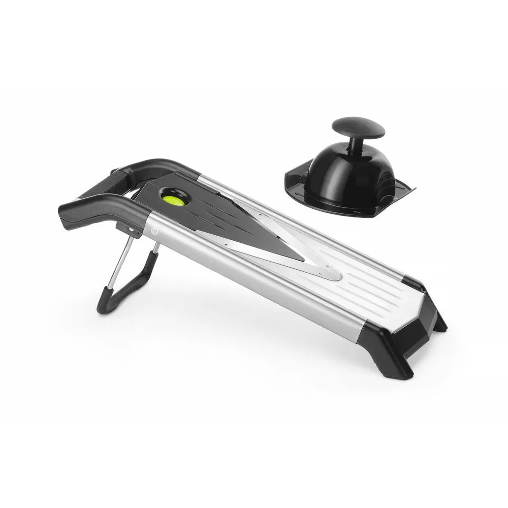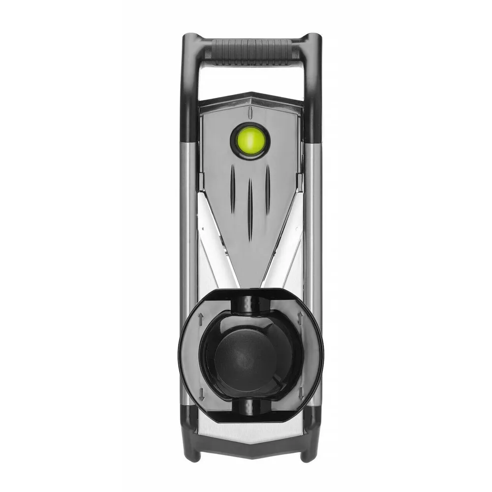Acest taietor profesional include accesorii pentru ajustarea grosimii feliilor si lame pentru julienne, permitand realizarea unor taieturi precise si uniforme. Recipientul pentru depozitare, capacul de protectie si frigariile din otel inoxidabil contribuie la siguranta si organizarea instrumentului in timpul utilizarii si depozitarii. Totodata, produsul poate fi curatat usor in masina de spalat vase, facilitand igiena in bucatarie.