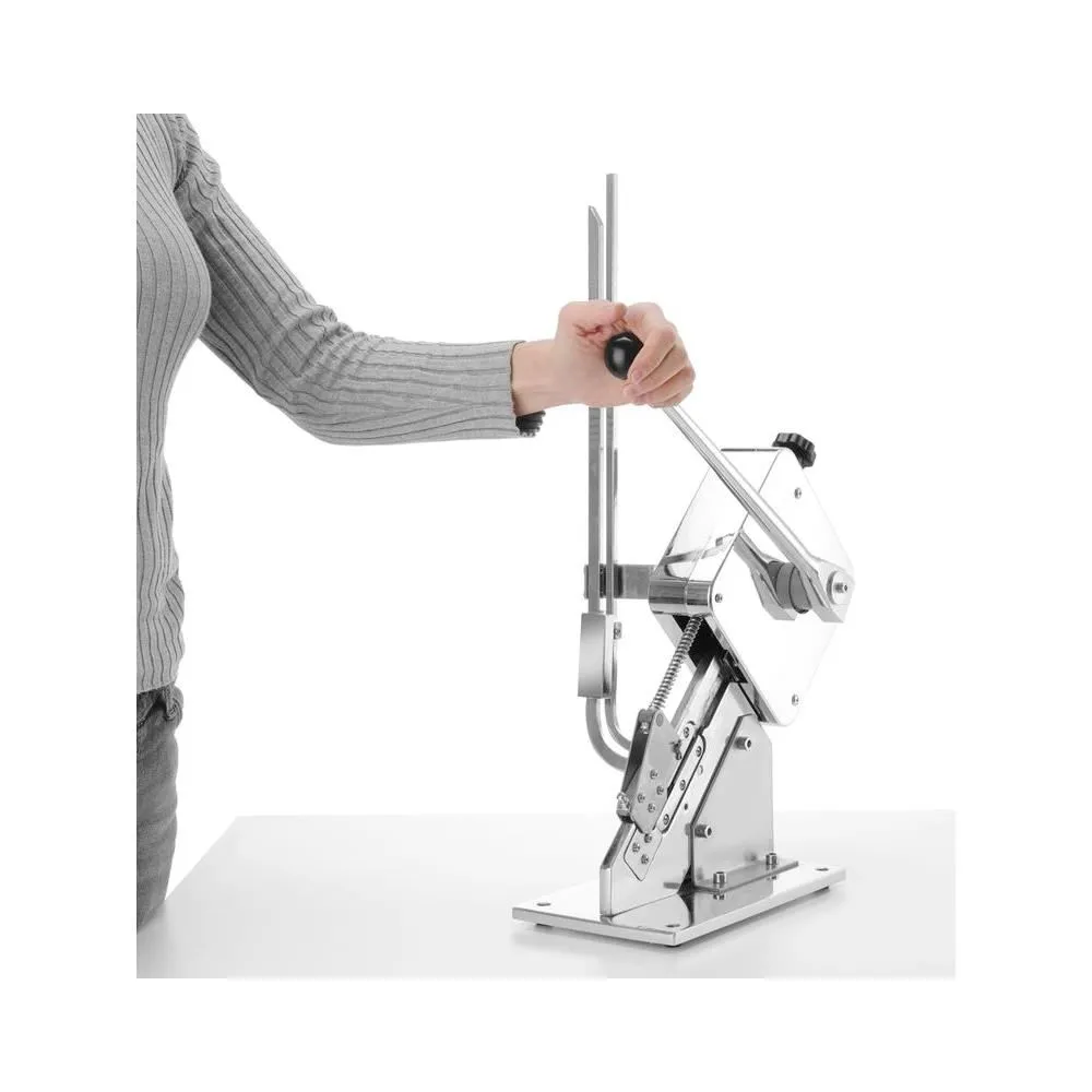 Acest clipsator pentru salam este construit din materiale de inalta calitate, cu structura solida din otel cromat si picioare din cauciuc pentru stabilitate maxima. Reglarea simpla a clemelor prin surub permite adaptarea la diverse grosimi si tipuri de ambalaje, iar pârghia lunga de 390 mm reduce efortul depus pentru prinderea clemelor. Inclusiv 1000 de cleme de forma U garanteaza continuitatea activitatii fara intreruperi, facand masina perfecta pentru orice tip de unitate de procesare a carnii sau productie alimentara.